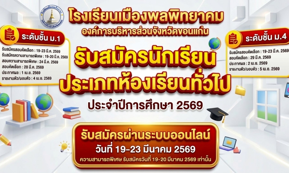 ระดับชั้นมัธยมศึกษาปีที่ 1 และ 4 ปีการศึกษา 2569 ณ หอประชุมโรงเรียนเมืองพลพิทยาคม